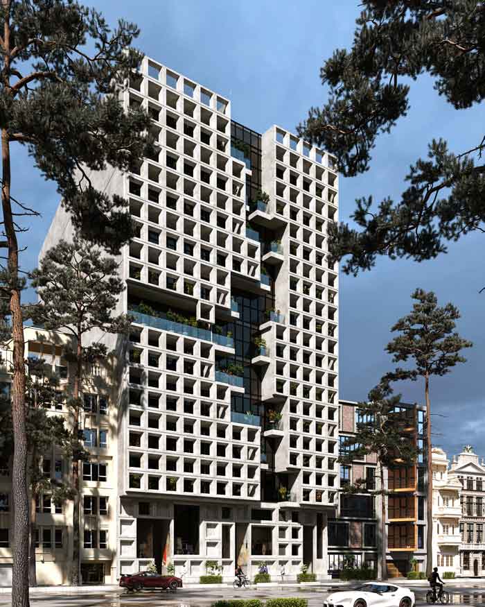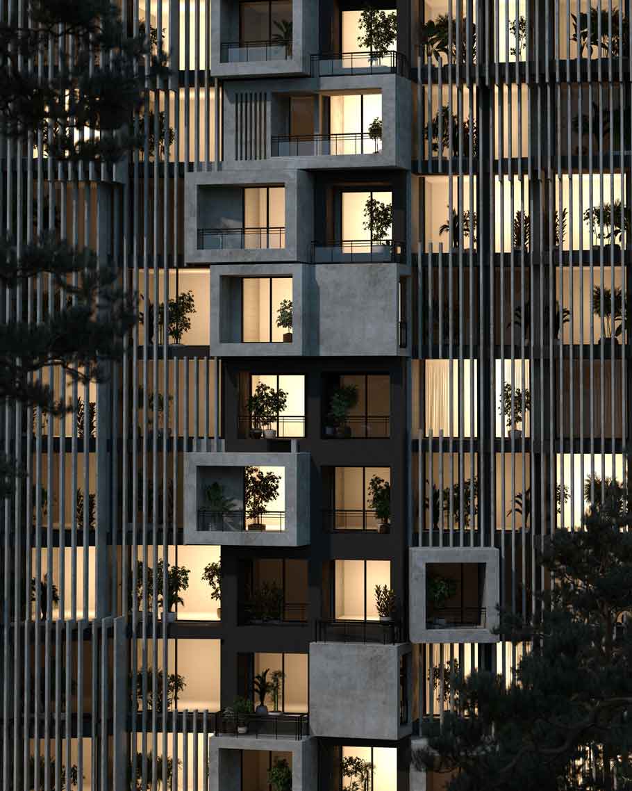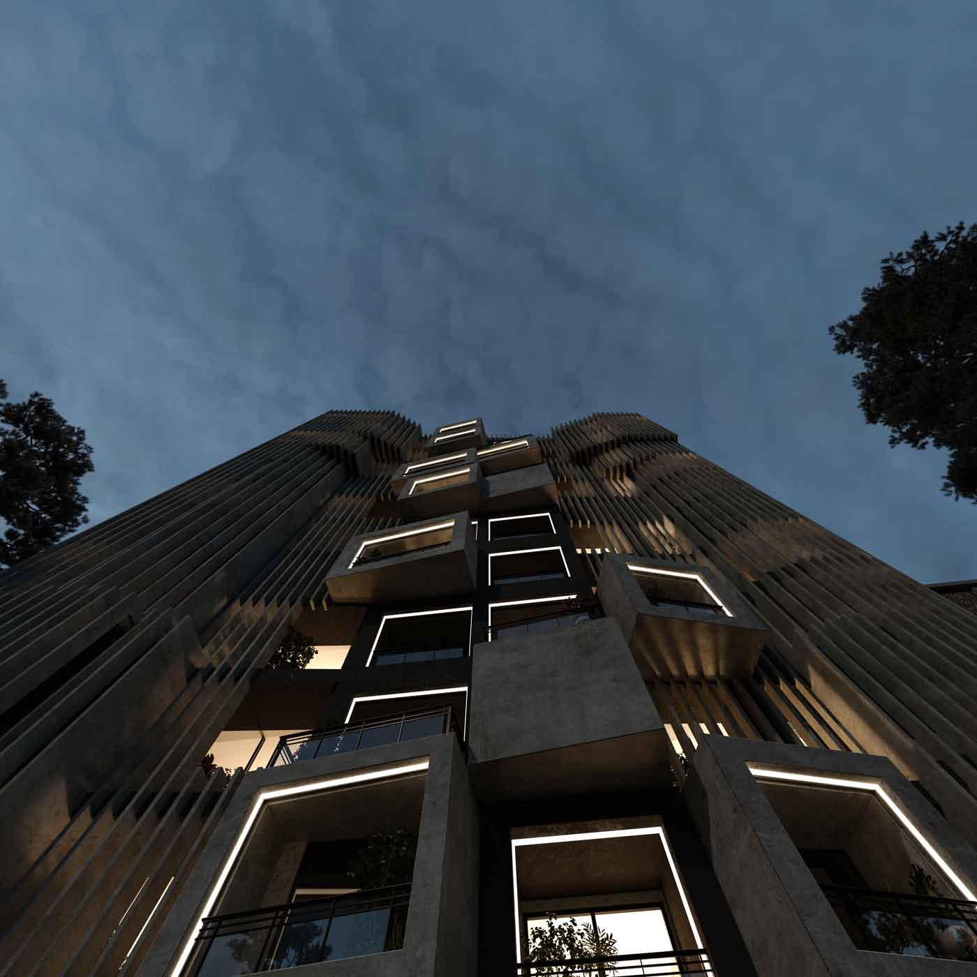 .2در طراحی نمای این برج از کنتراست بصری بین خطوط عمودی که در زمینه کار قرارگرفته و باکس